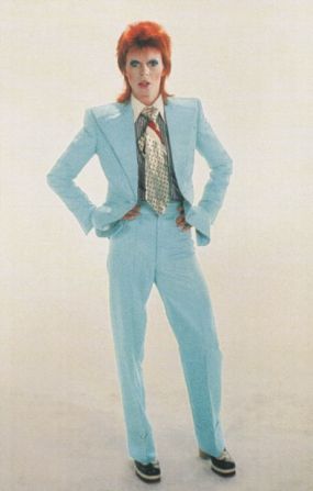 In the early 1970’s, Bowie, heavily influenced by Iggy Pop, Lou Reed, and the rebellious glam made special by the New York Dolls, began to develop Ziggy Stardust. Ziggy, a character which has now come to define glam and androgyny, was a sexless space traveler who was sent to earth to save it from impending doom. The creation of Ziggy as something “other” saving a world fraught with war and civil unrest was a rebellious act that had lasting resonation. Ziggy’s bright red feathered hair is something that is still instantly recognizable to people across the world, even those who may have never heard Bowie’s music.