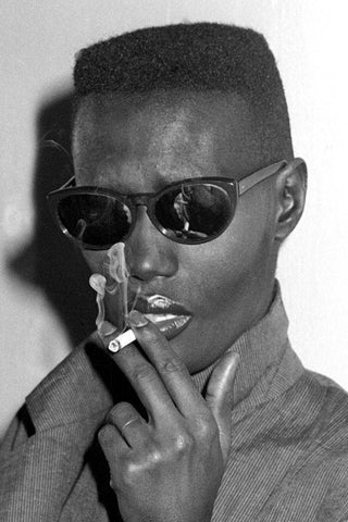 Before branching out into music and film, Grace started her career as a model. She wore a faded flattop that would accentuate her stunning bone structure and wrap it all up in gender ambiguous high fashion suits and sportswear.