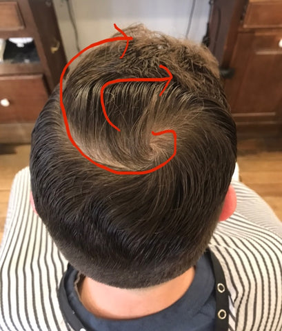 A cowlick is the swirl in the back of your head. Our entire head of hair grows in a swirling pattern out of this center, kind of like the eye of a hurricane. Some people may have smaller cowlicks in their front hairline ,which can cause a slight variation of growth in that area, but I find that even then, when the hair is parted in the direction of the back cowlick, these front cowlicks tend to fall in line better with the rest of the hair.